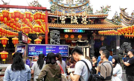 慈諴宮前的“大腸包小腸”攤位吸引食客排隊購買。