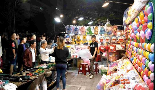 套圈、射擊、扎氣球等傳統娛樂專案吸引夜市客參與。