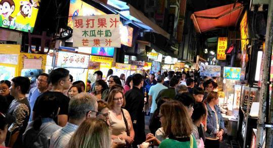 每到夜晚,士林夜市總是人潮湧動,週末、節假日尤甚。當日雖非週末,逛夜市的人流也將慈諴宮前狹窄的通道擠得滿滿當當。