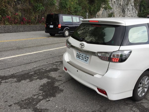 豐田的wish,當地司機都愛拿來做計程車,七座車,挺舒適的。第一站去清水斷崖 ,聽說之前可以離山腳近一些的地方拍照,但聽說最近有個學生死掉了,所以禁止下去,只能在這個地方看。第二站是太魯閣。太魯閣都是一些山的景點, 各個景點間需要巴士穿梭。適逢春節,巴士免費