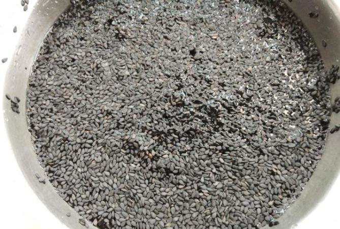 2、準備200克黑芝麻,放入清水中淘洗2遍,如果發現有不好的芝麻粒,撿出來扔掉,然後瀝乾水分。