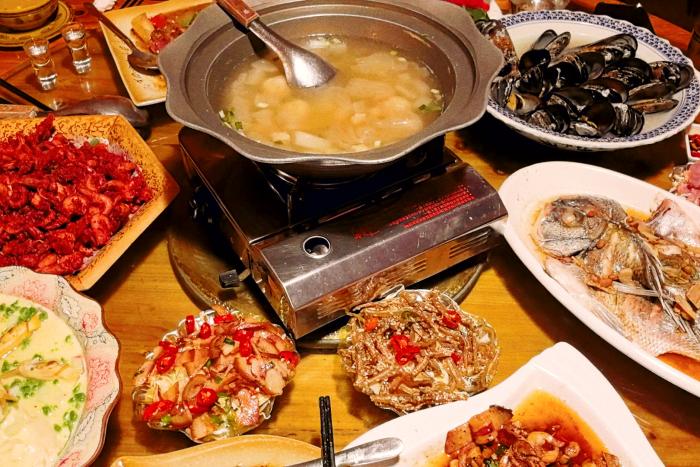 「我身份證上就寫著祖籍福建長樂!」九榕閣餐廳老闆林通全,把店開在距離馬祖南竿島福澳港不遠處的半山腰上。石砌與木造牆面搭起的外觀別有一番風情,林通全說,這是仿古的閩東建築。餐廳裡的每一套桌椅、每一盞燈、每一幅畫,都是他到大陸購買運回馬祖的。