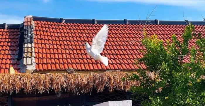 潔白的鴿子悠閒地踱步