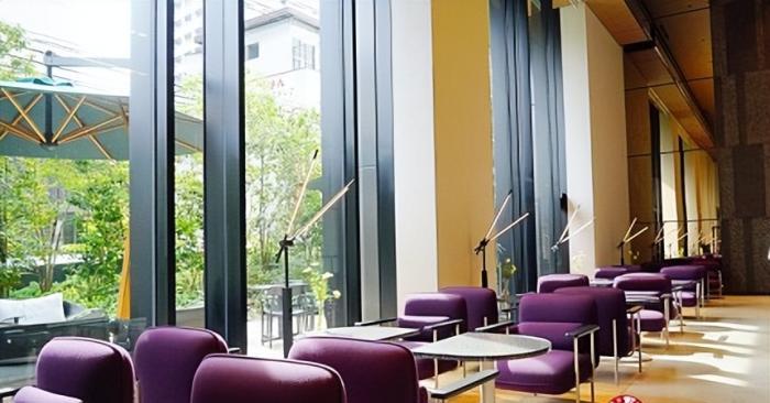 飯店設有戶外沙發座位區,以綠色灌木和周邊巷弄街景隔開,遮蔽視線與噪音,隱密中帶有城市綠洲的悠閒氛圍。大廳的室內休息座椅區採光也極佳,挑高設計讓心情更放鬆,一旁的酒吧則提供多項福岡風的特調飲品與簡單輕食,運用方式非常彈性。