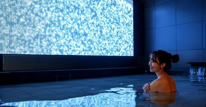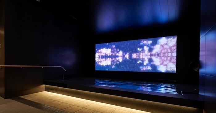 「CROSS Life博多天神」另一大亮點是展現數位藝術的大浴場。不論男女湯皆設有大型LED 螢幕,以「時間變化」為主題,投影光影與色塊,呈現出森林、天空、雲朵、光影、水、生命等主題。僅僅的色塊變化,卻能充分感覺到時光的流逝,泡湯之餘也跟著沉靜下來,讓身心靈能徹底放鬆。女性更衣室內還陳設藝術作品「CITY/ACCURATE」,以木製陰陽雕刻呈現出的凹凸陰影,象徵天神商圈各種建築物密集聚集的意象。另外女湯有蒸汽浴、男湯則有檜木烤箱區可使用。