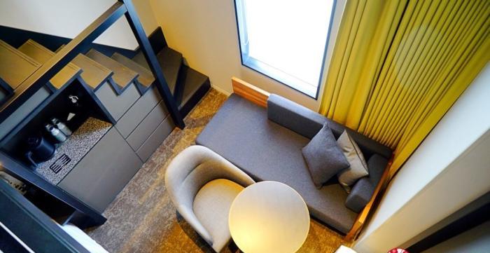 「樓中樓房型」(ロフトルーム)是飯店最人氣的房型!房間面積17 平方公尺,有效利用挑高設計成立體樓中樓,一樓有單張雙人床與沙發區,二樓再放置一張單張雙人床,可容納3 至4 人小團體入住。不但能兼顧休息隱私,爬上爬下饒富童趣,推薦晚上可以打一場熱鬧枕頭仗!