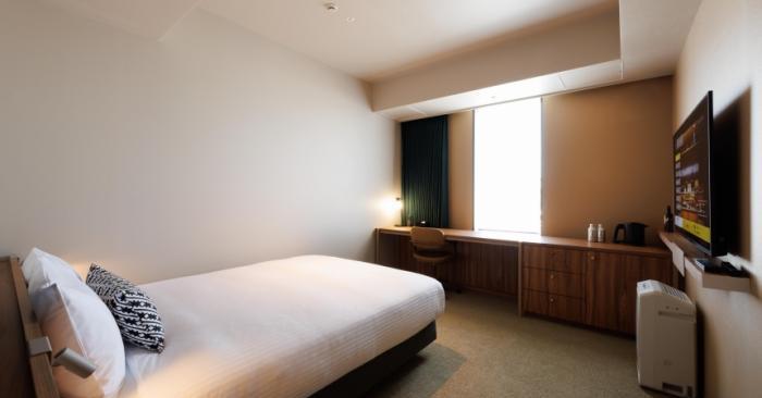 「單床雙人房型」(コンフォートダブル)是標準房型,房間面積17 平方公尺,適合1 至2 人入住。房間配置設計以桌椅為主,桌面佔據幾乎整個房間的長度,加上坐起來穩定移動無噪音的高階滑輪椅,即使長時間久坐也無不適,適合商務旅客入住。